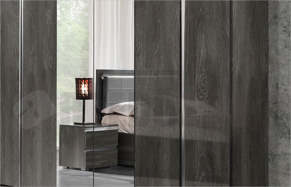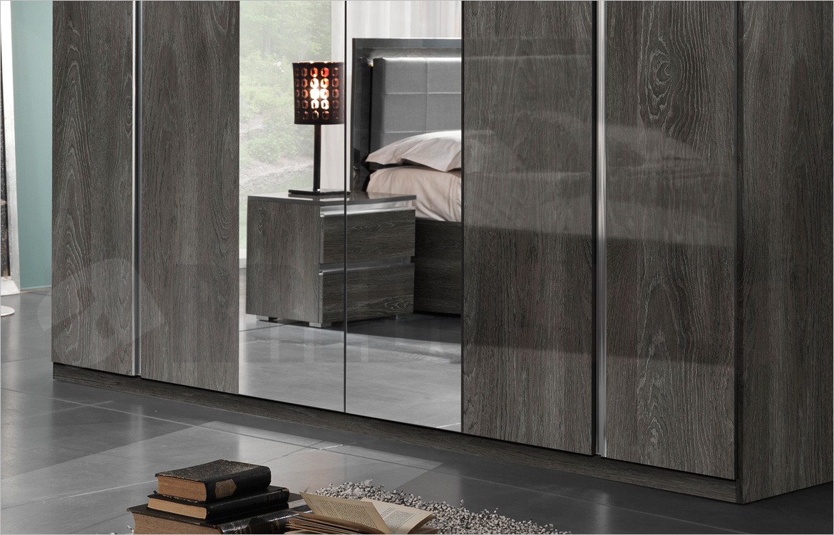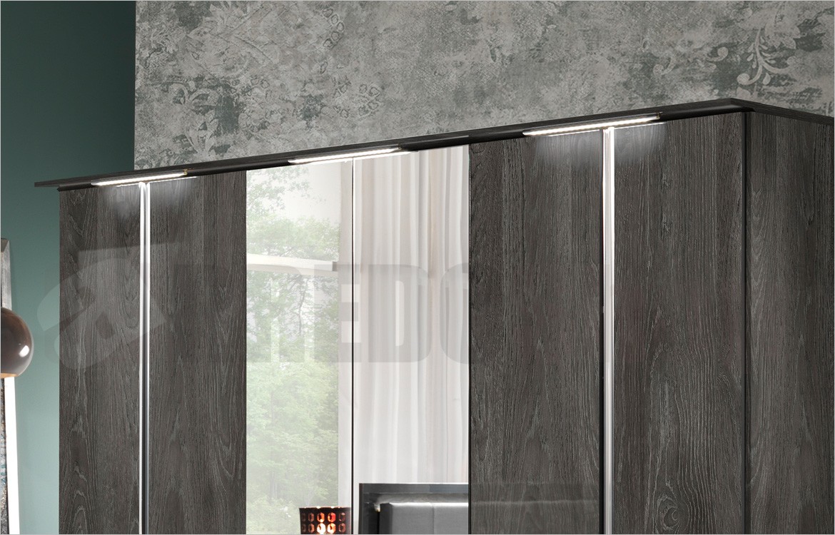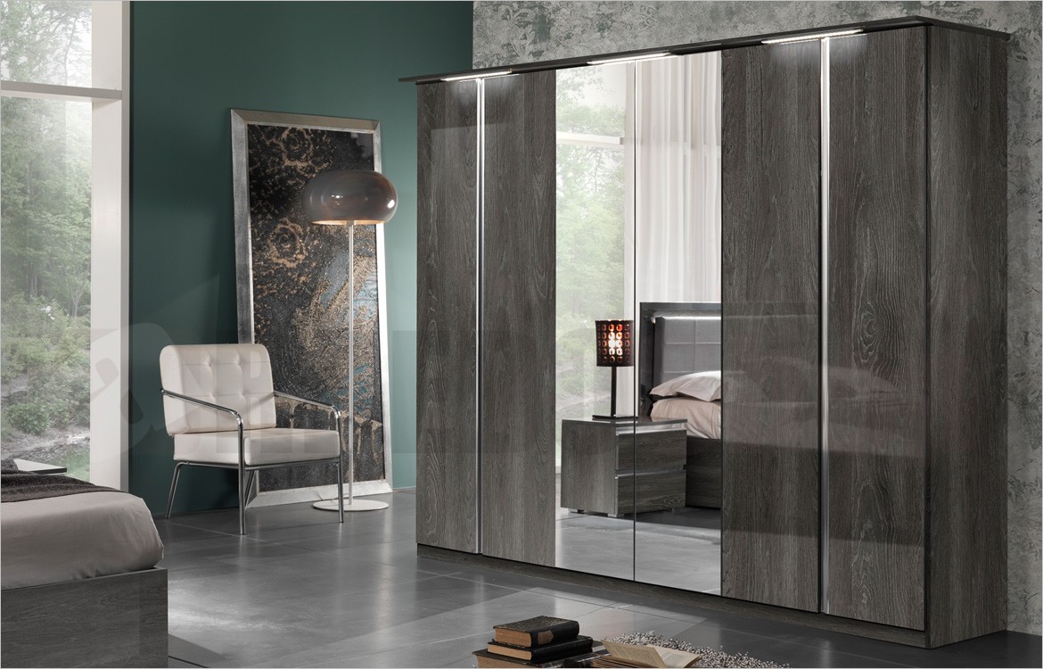 -Armadio 6 ante battenti con 2 ante centrali a specchio e cappello con luci integrate