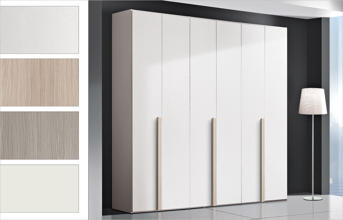 • Armadio 6 ante battenti, 3 ripiani interni inclusi.