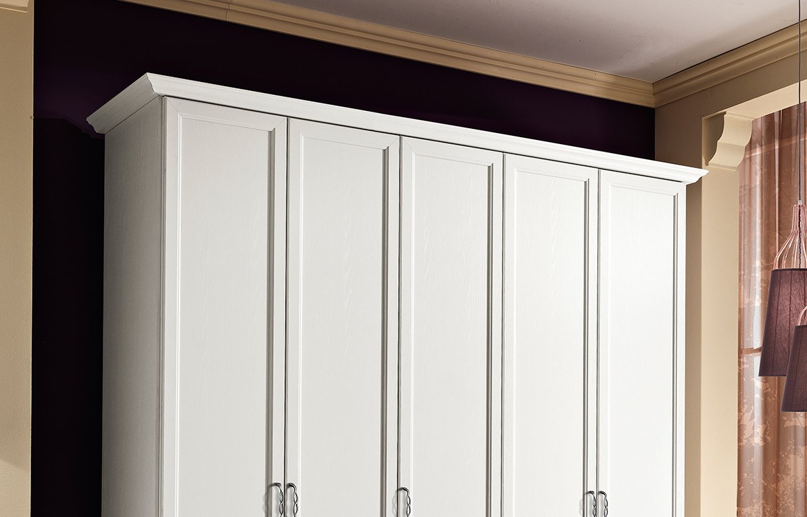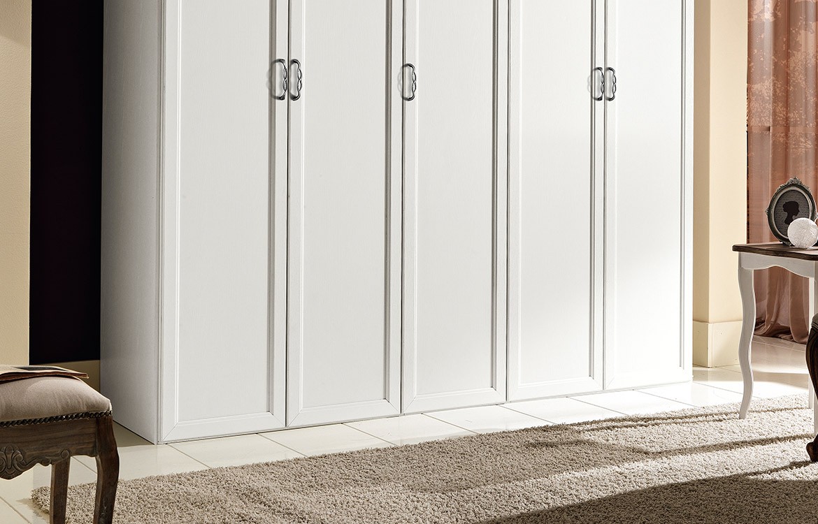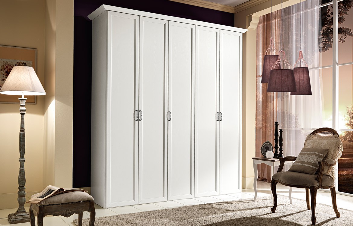 Armadio in stile classico 5 ante battenti con maniglia argento e cimasa ornamentale