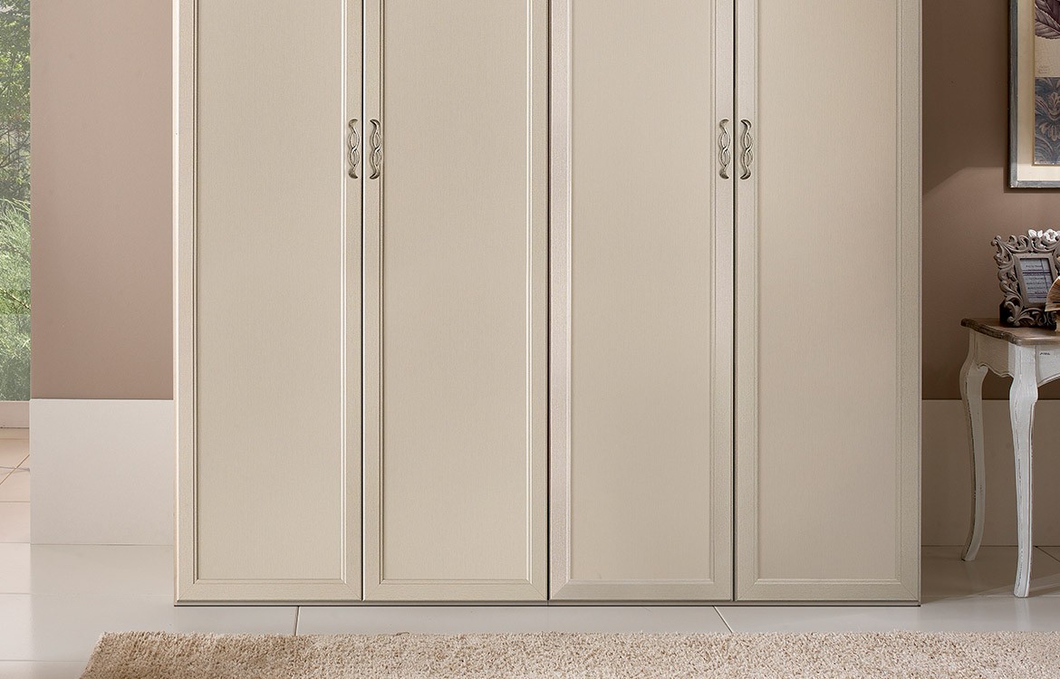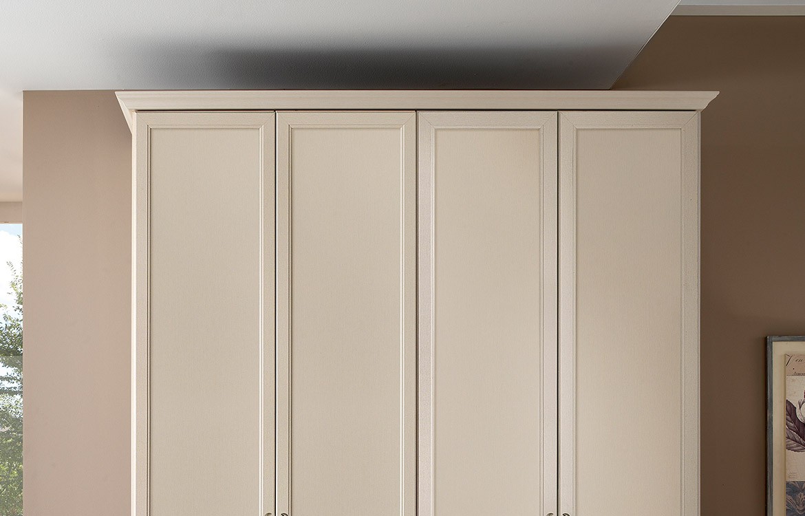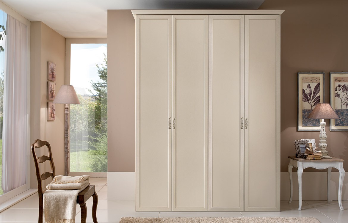 Armadio in stile classico 4 ante battenti con maniglia argento e cimasa ornamentale