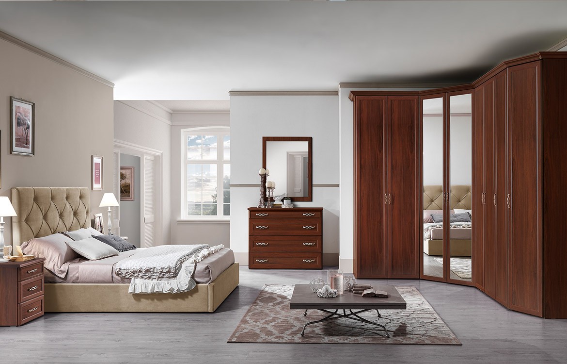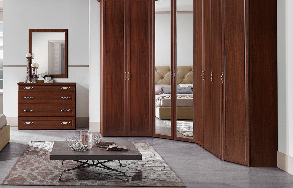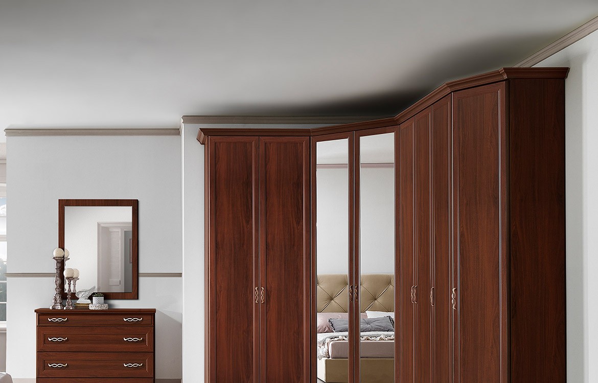 - Armadio angolare con cabina, ante battenti con specchi