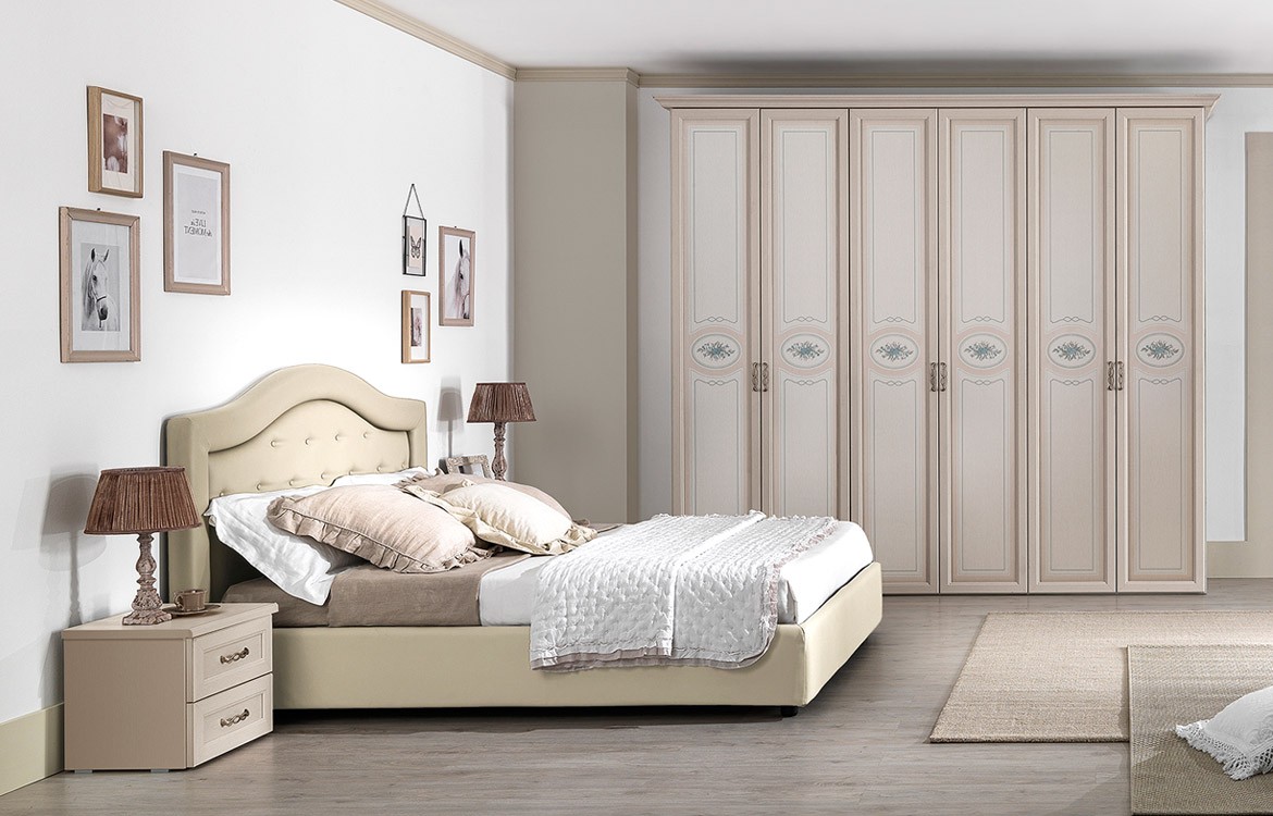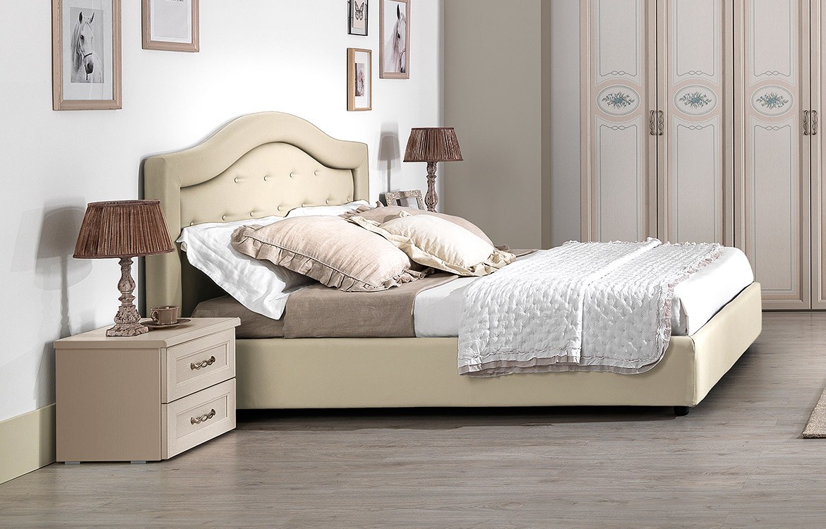 (solo su patinato beige) misure: H.250 - L.284,4 - P.62,2 - Letto Sonia imbottito per rete da 160x190,