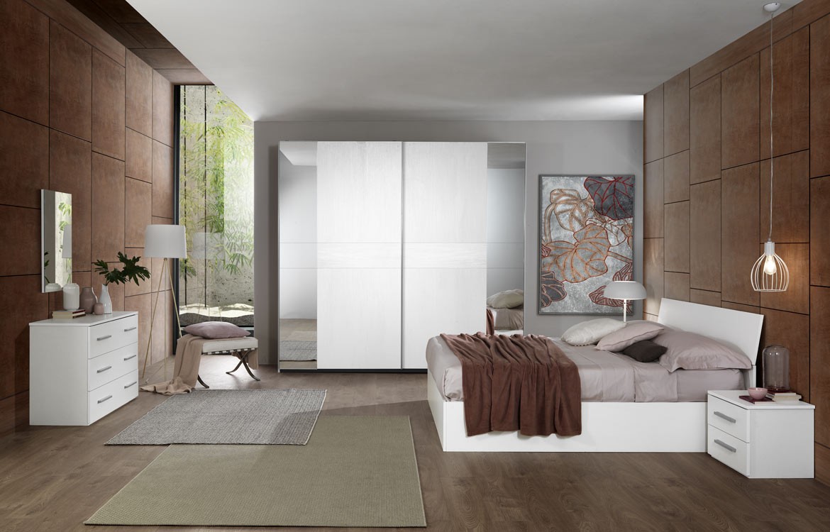 La camera matrimoniale è una composizione bloccata non componibile, disponibile unicamente nelle versioni indicate sotto. Per informazioni contattaci dai pulsanti in alto a destra, via WhatsApp o via mail.