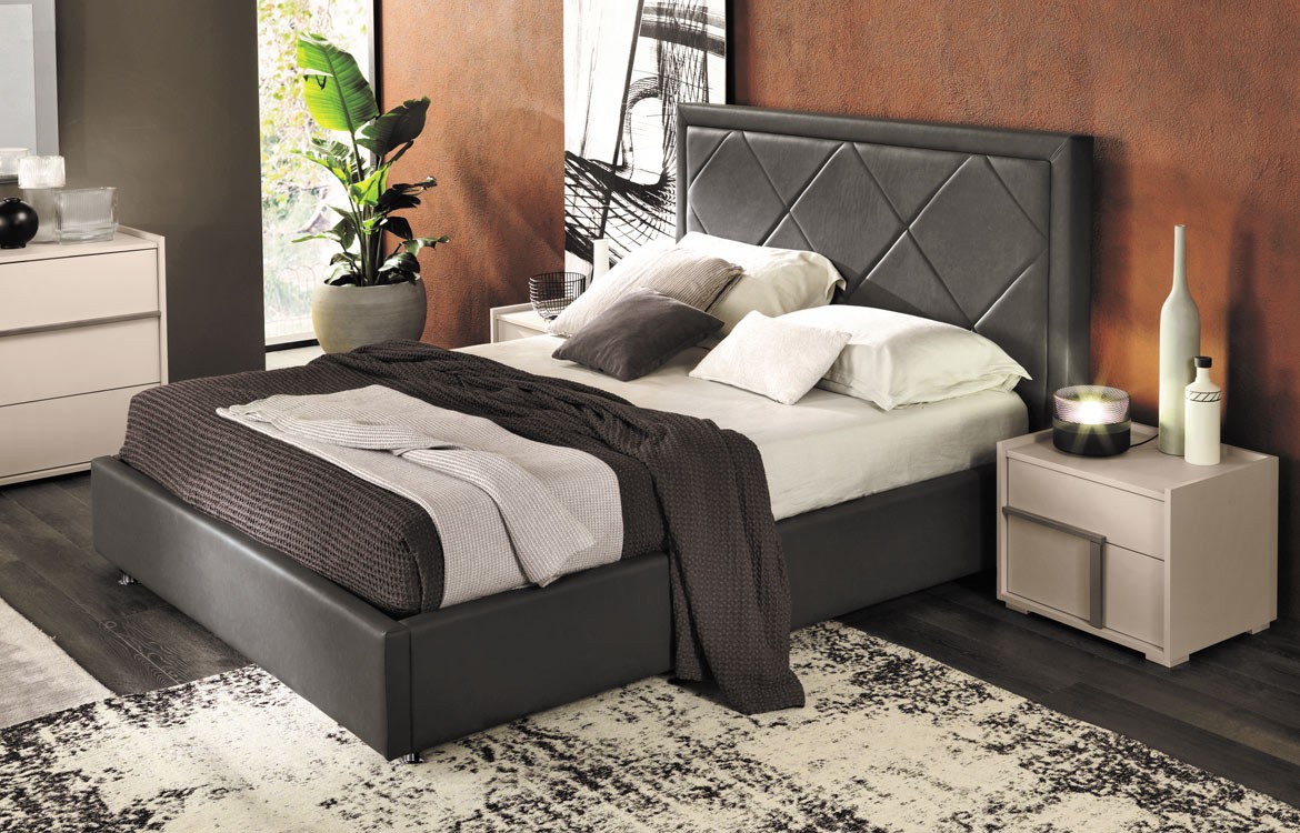 -Letto con giroletto e testiera mod. Nizza, misure: L.181 - P.207 - H.101