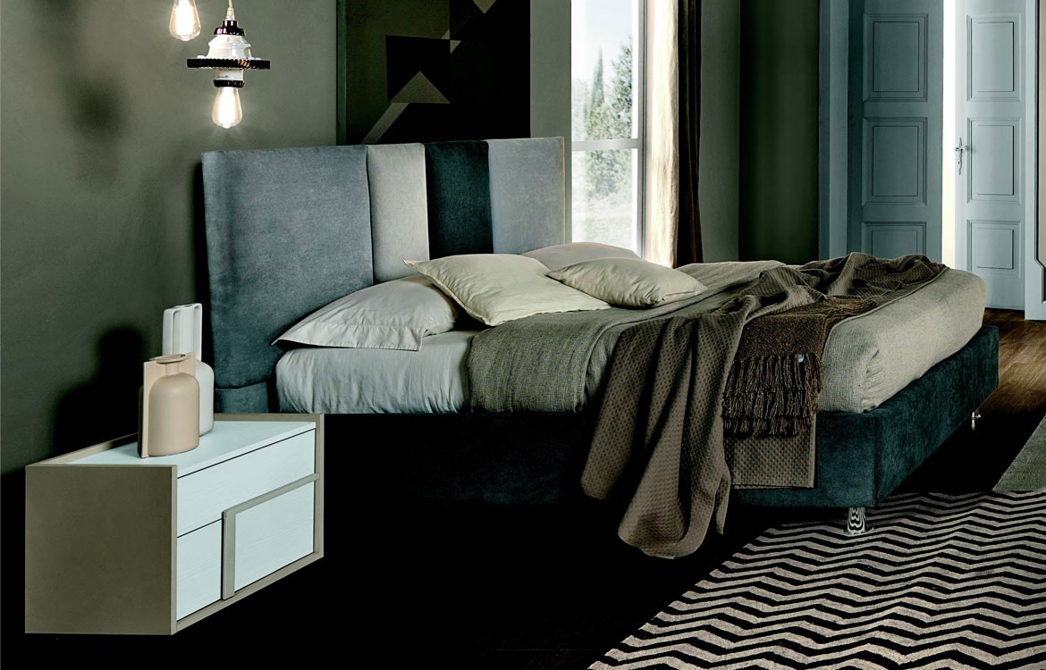 -Letto con giroletto e testiera mod. Vegas, misure: L.183 - P.204 - H.121