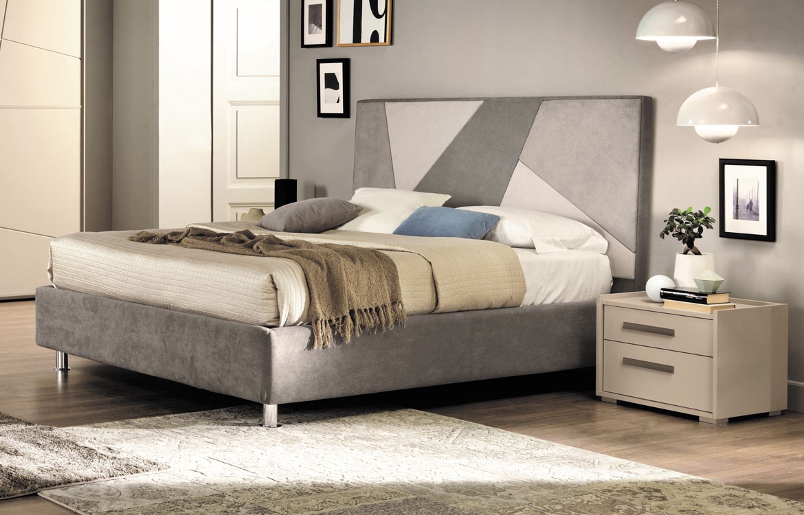 -Letto con giroletto e testiera mod. Tampa, misure: L.183 - P.204 - H.129