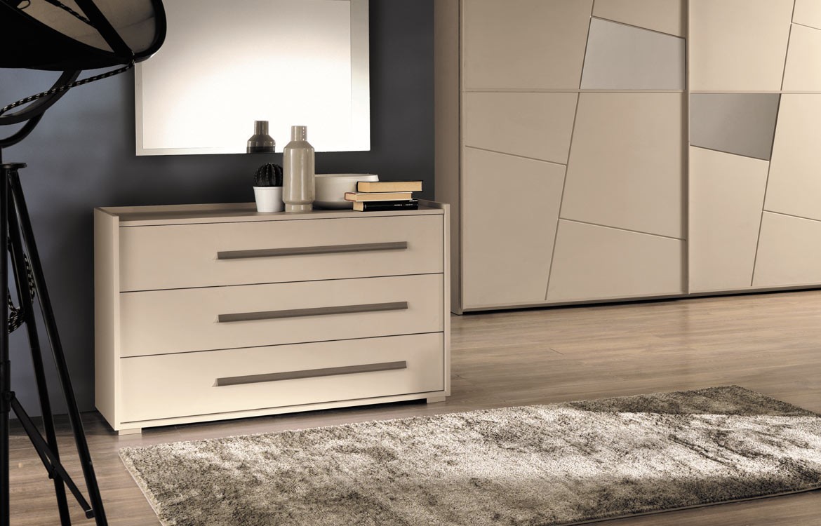 -Gruppo notte 3 cassetti mod. Toronto e maniglie mod. Panama, misure: L.122 - P.51,5 - H.78,1
