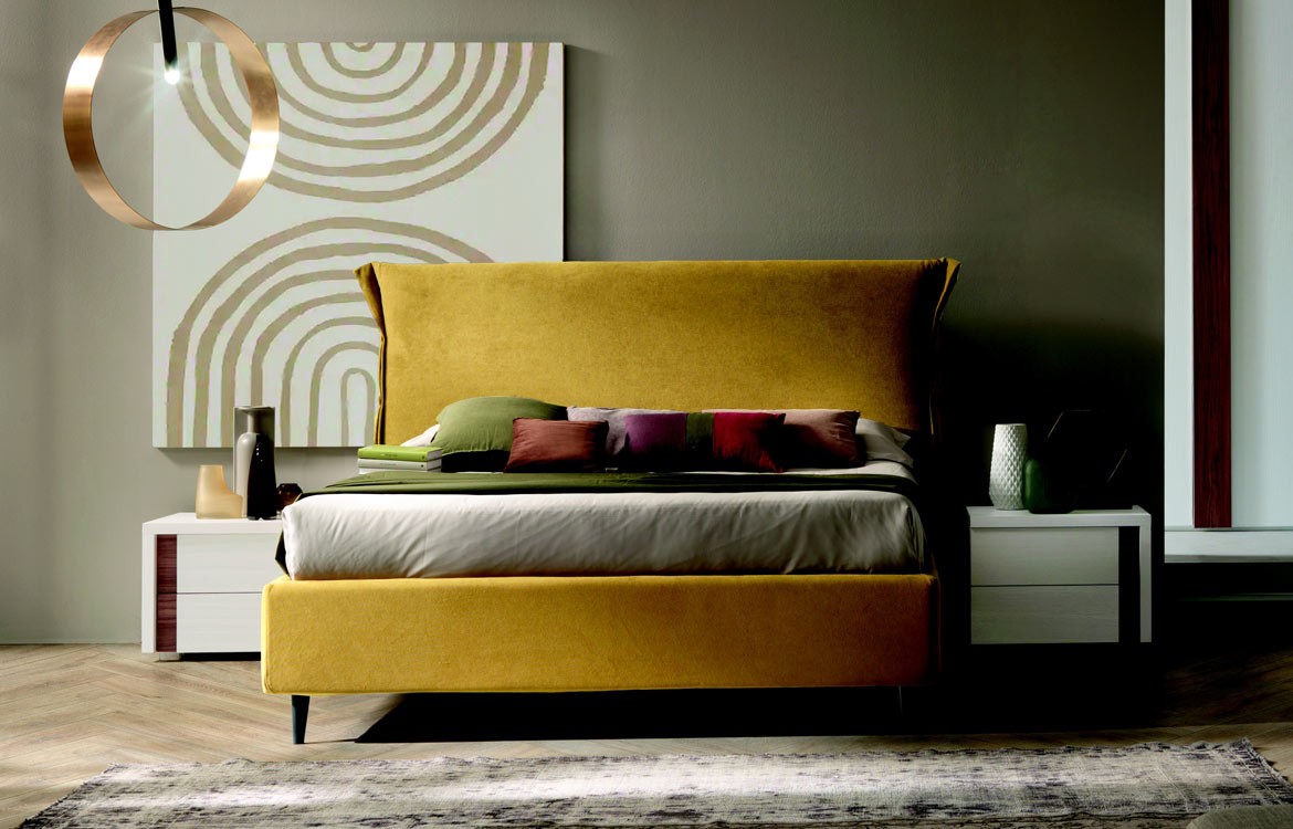 -Letto con giroletto e testiera mod. Milano, misure: L.186 - P.218 - H.130