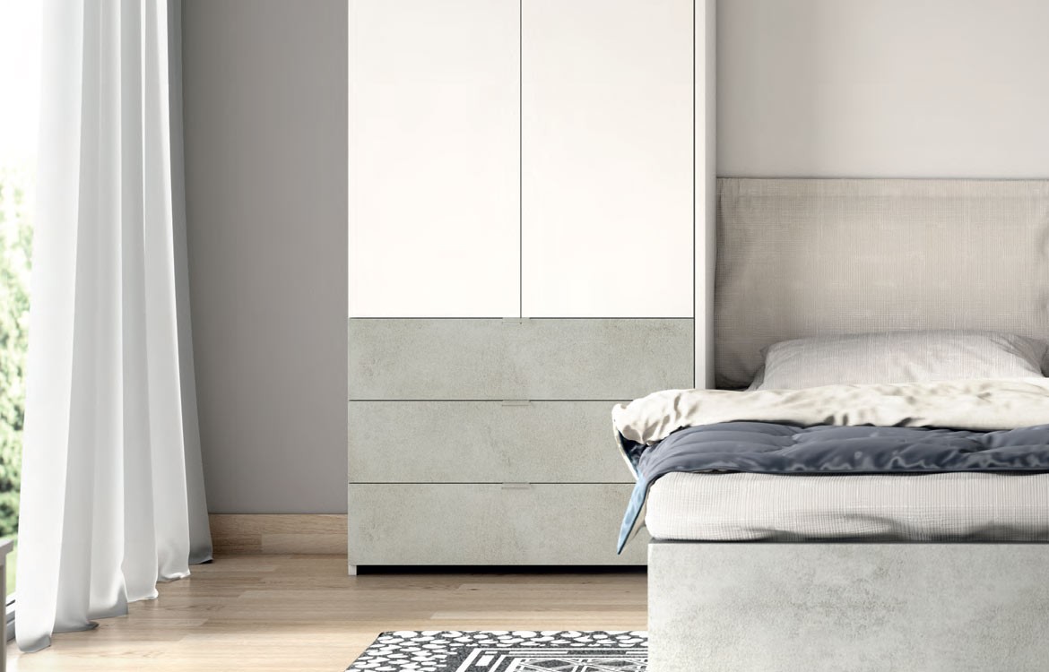 -Armadietto doppio con ante battenti, 2 ripiani, 3 cassetti