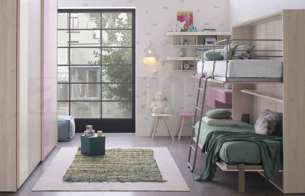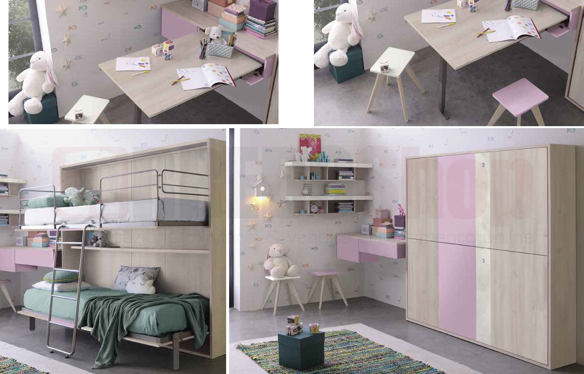 -Salvaspazio "CLICK" con 2 letti misure: L.213,7 P.33,3/114,3 H.195,3