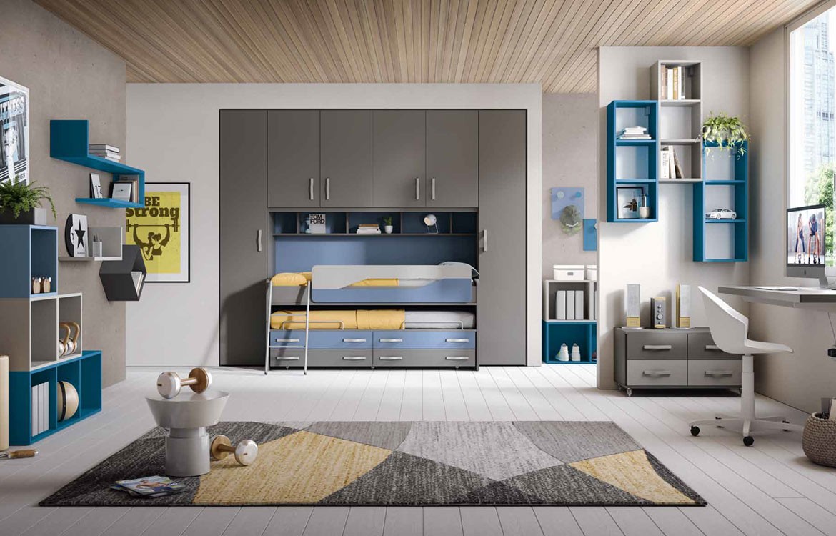 misure: H.245,3 - L.293,2 - P.95,4 - Letto multifunzione con secondo letto su ruote con 4 cassetti