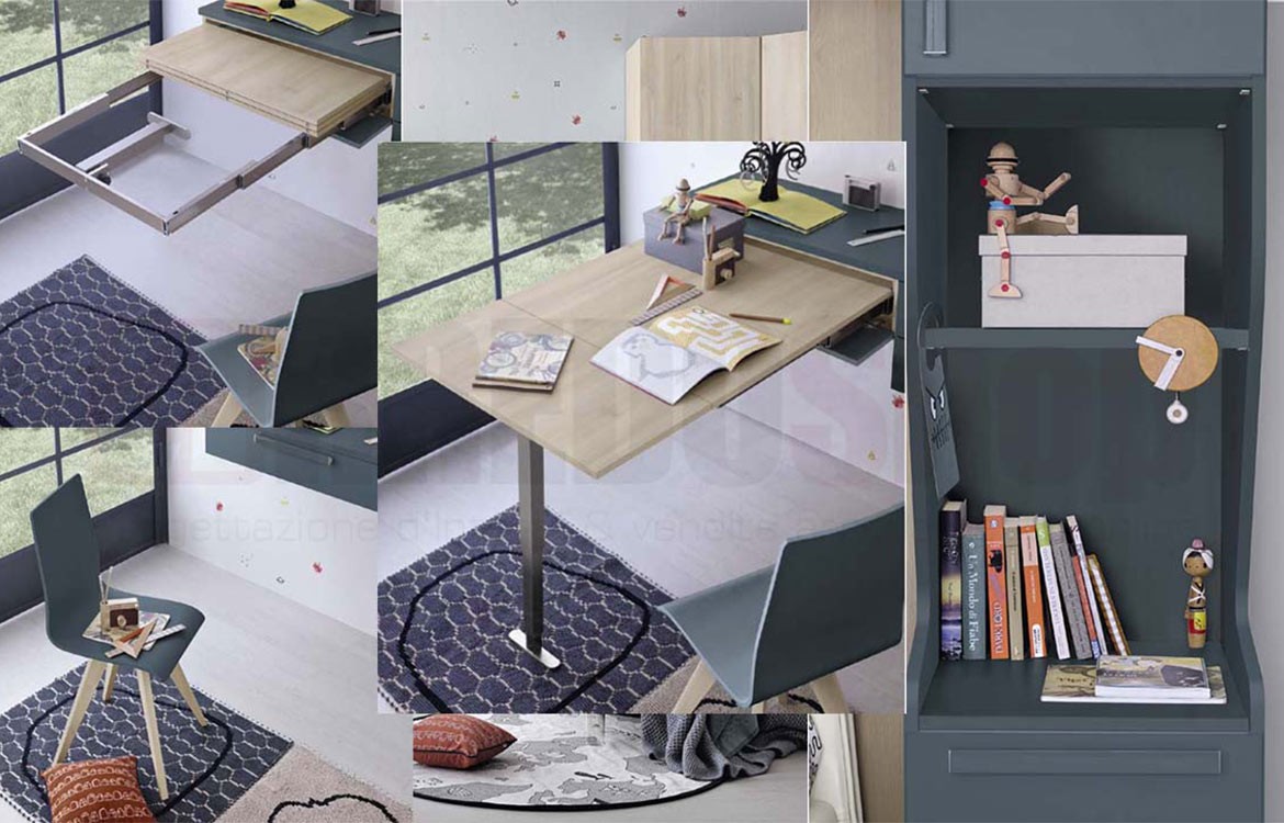 La cameretta è ampiamente componibile, per progetti e soluzioni personalizzate