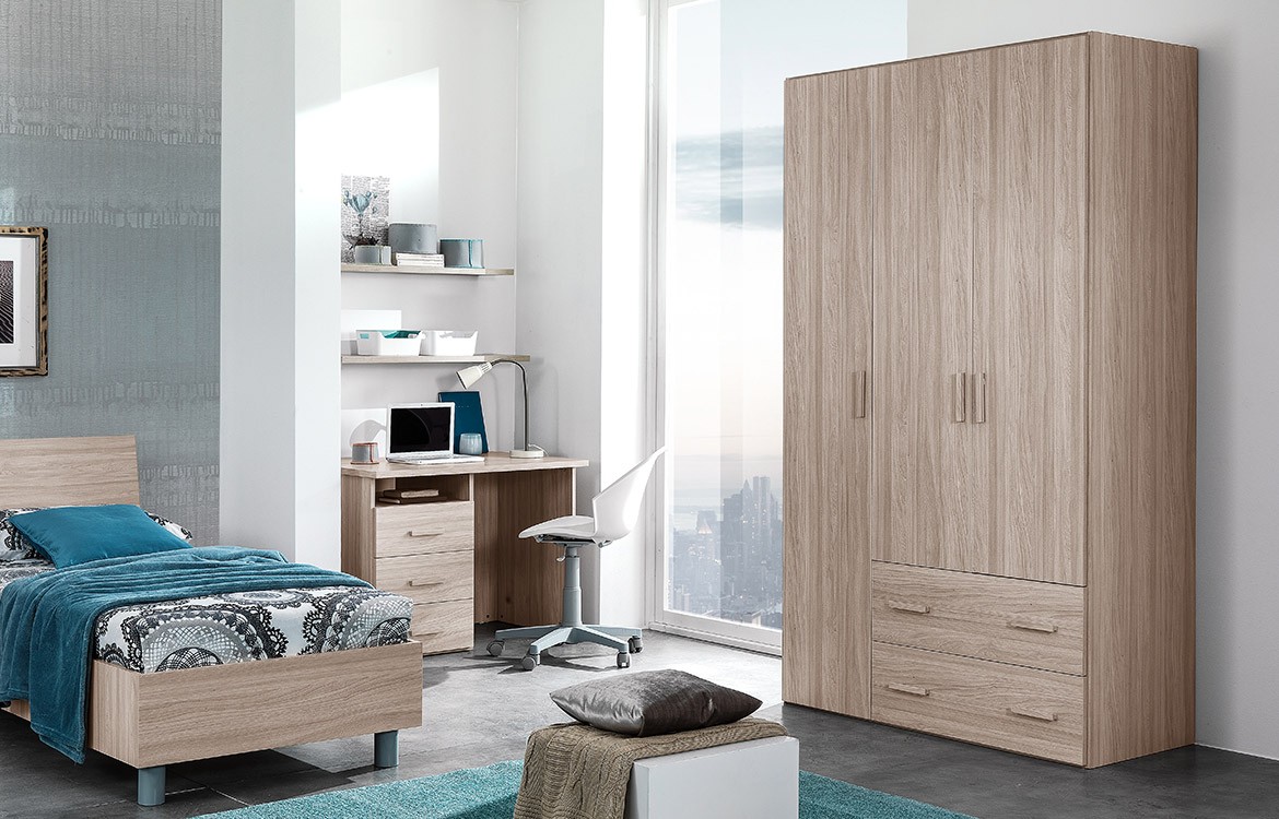 Cameretta con armadio e ante con cassetti e letto singolo easy10
