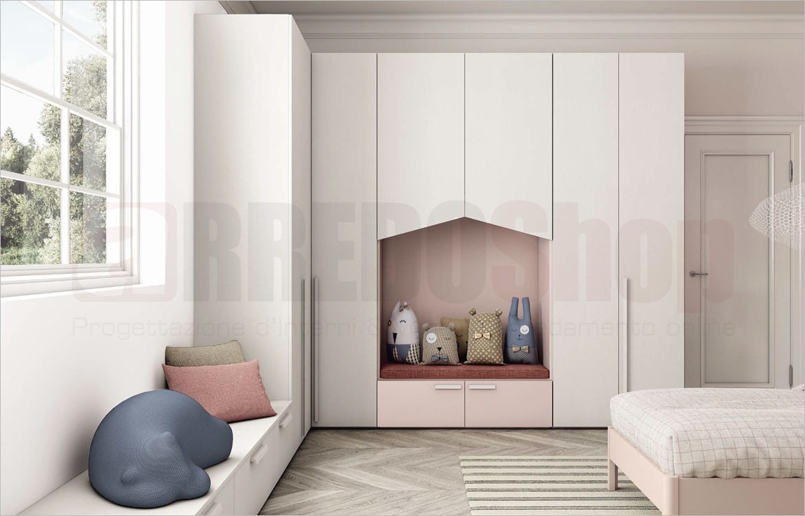 -Armadio angolare 7 ante battenti ONE con nicchia, misure: L144,6 + 311 x P56,3 x H257,6