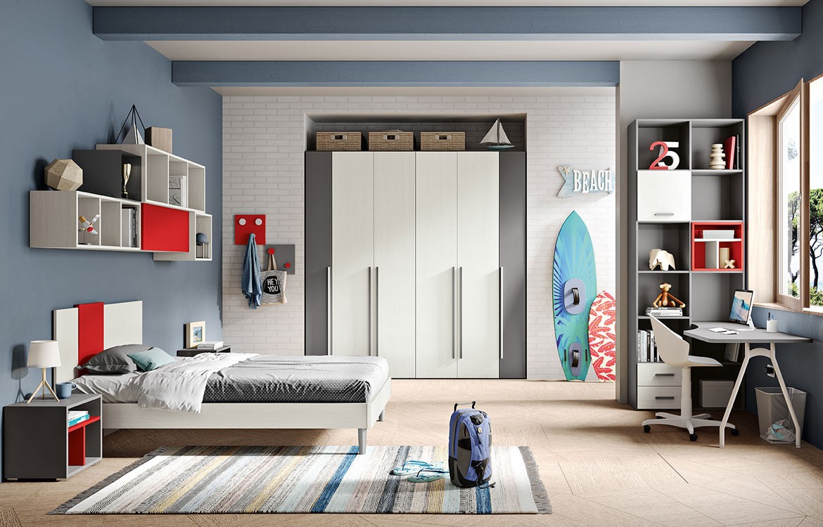 - Letto una piazza e mezzo con testiera bicolore (per rete da 120x190)