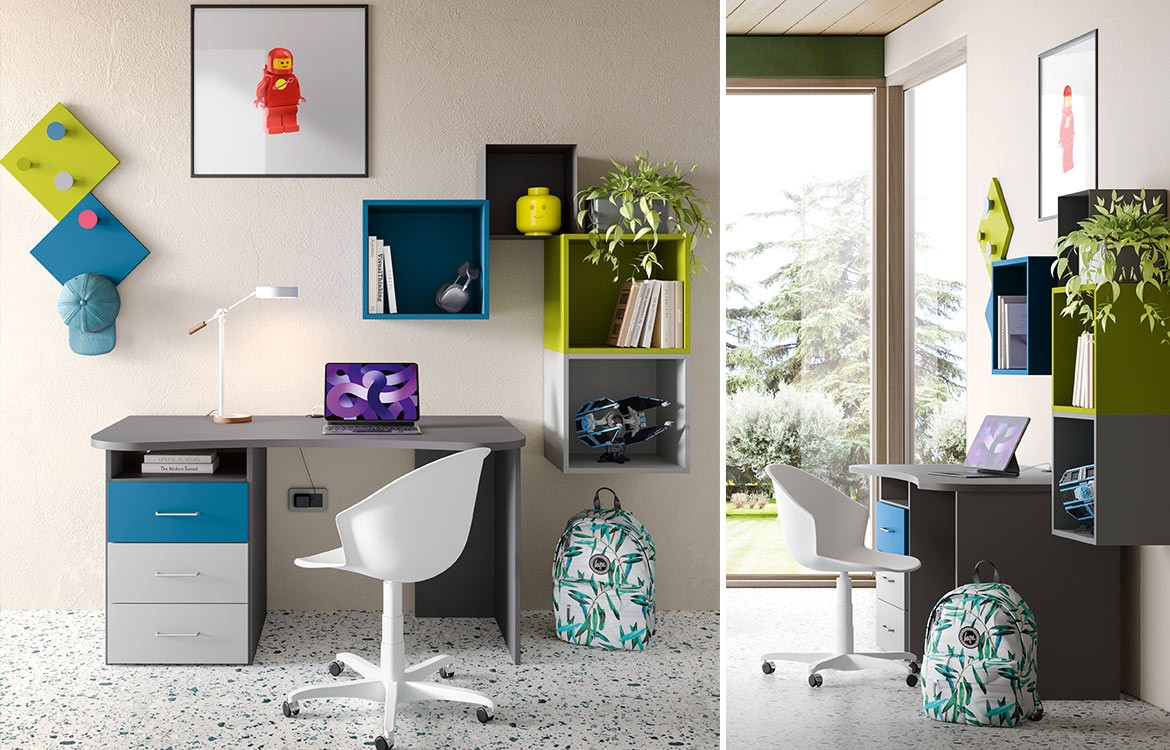 ZONA STUDIO OPZIONALE - Zona studio formata da scrivania L.139, cubotti pensili