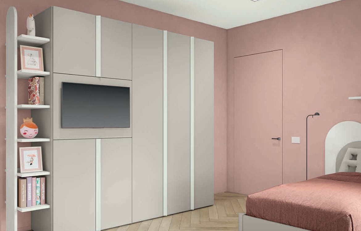 - Armadio con 4 ante battenti con vano TV terminale libreria