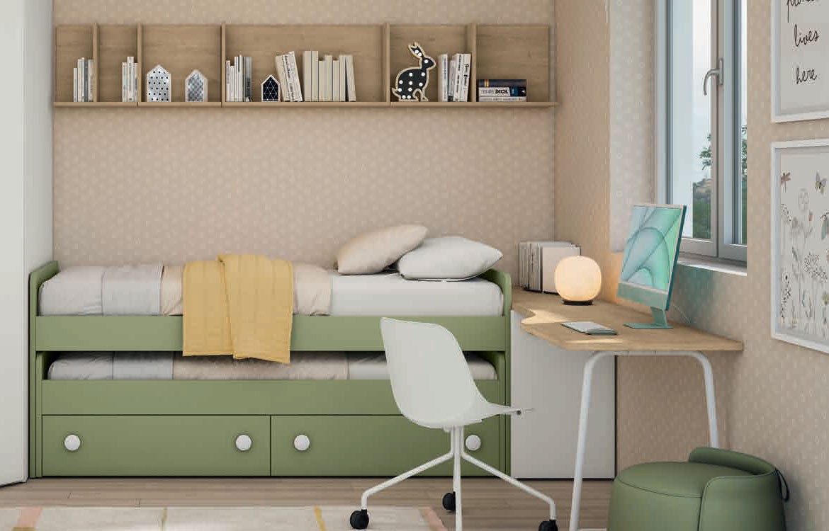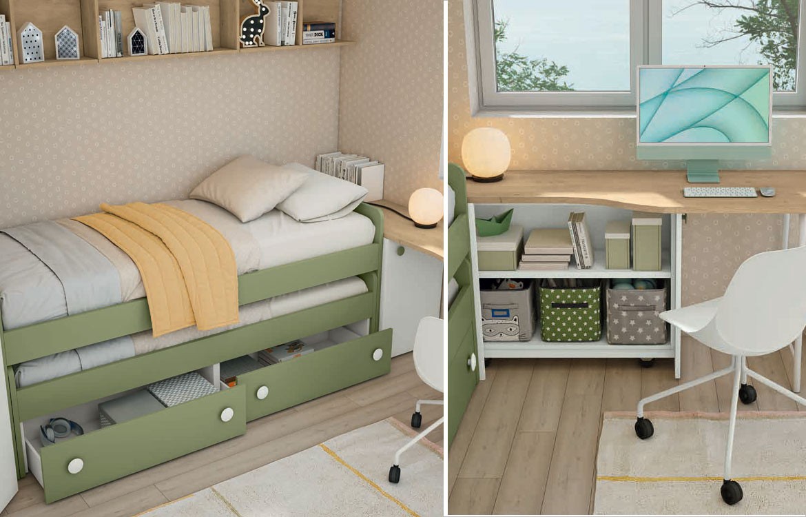 Misure L.223,6 x 98,7 P.56,3 H.257,6 - Letto SPIKE con secondo letto estraibile con cassetti, reti incluse