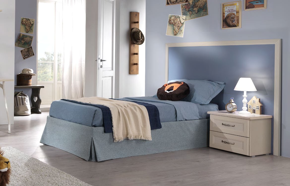 misure: H.216 - L.195 - P.62,2 - Letto Frida Singolo per rete da 80x190, testiera a muro
