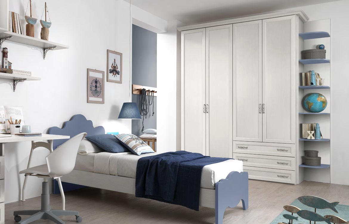 - Armadio con 4 ante battenti con tre cassetti e vano elemento terminale a giorno