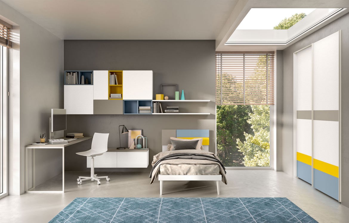 La cameretta è ampiamente componibile, per progetti e soluzioni personalizzate