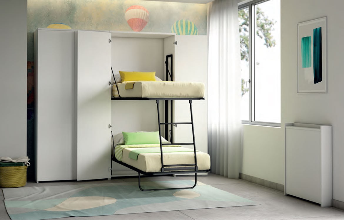 -Mobile letto a castello in legno rivestito melaminico,2 reti a doghe, scaletta