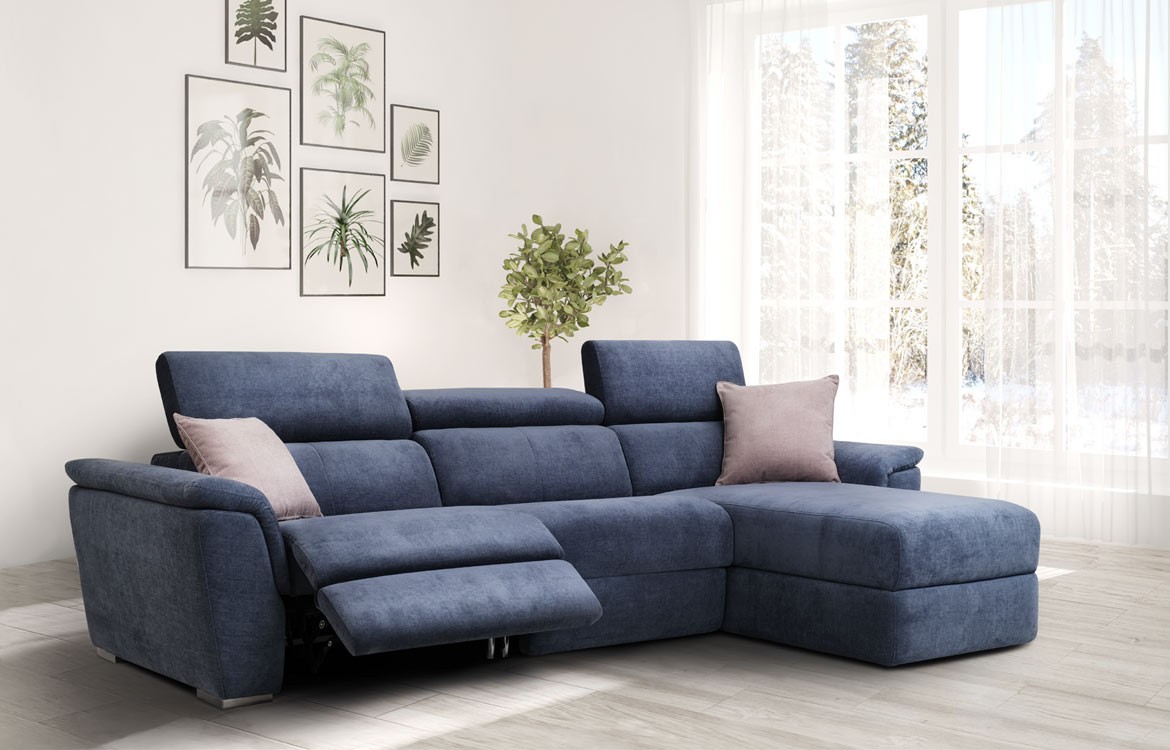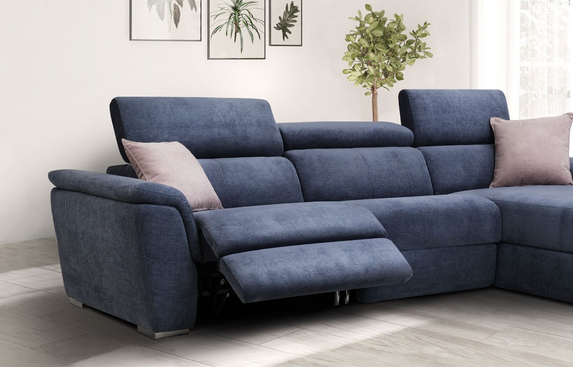 -Divano 3 posti con seduta Relax e Chaise Longue small con contenitore.