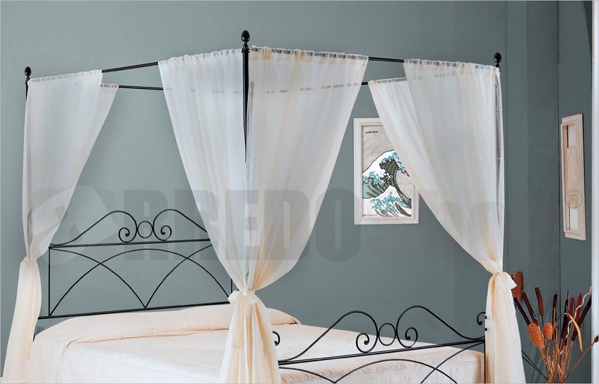 Letto matrimoniale ALES in ferro battuto a baldacchino completo di ganci reggi rete.