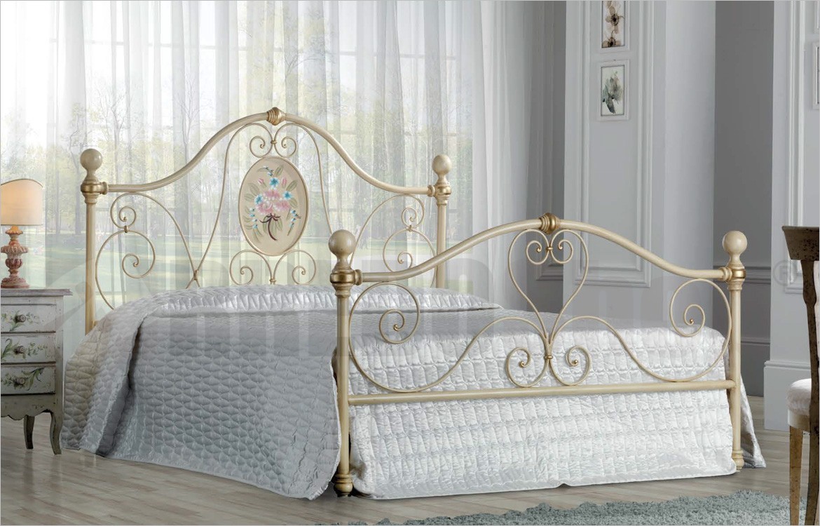 Letto matrimoniale ALES in ferro battuto completo di ganci reggi rete.