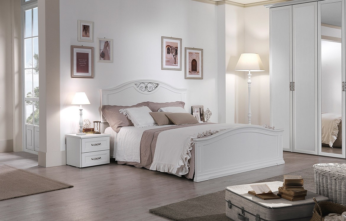 • Letto matrimoniale in legno Moira con inserti in ferro battuto