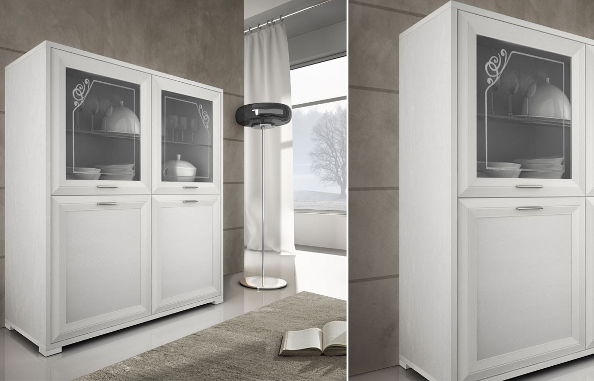 Madia JAZZ030 in Decò con 2 ante in vetro, 2 ante in legno in finitura Bianco Frassino.