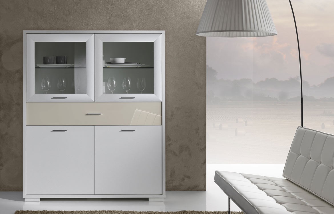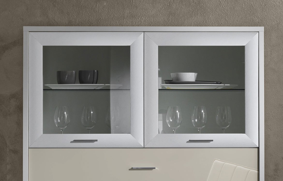 Madia JAZZ065 con 2 ante in vetro, 2 ante in legno e cassetto.