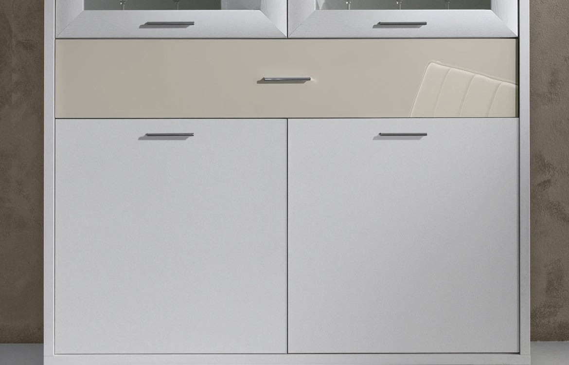 -Madia 2 ante in vetro, 2 in legno e cassetto: L.125 - H.150 - P.42,5