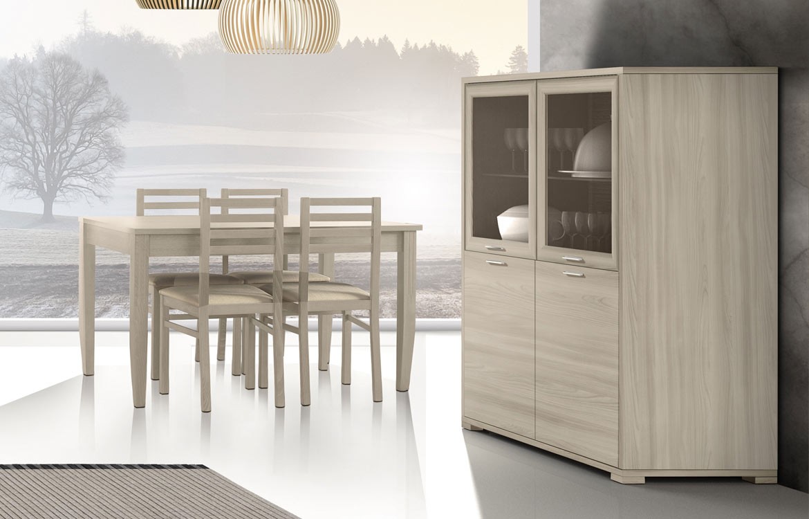-Madia con 2 ante in vetro, 2 ante in legno e cassetto, misure: L.125 - H.150 - P.42,5