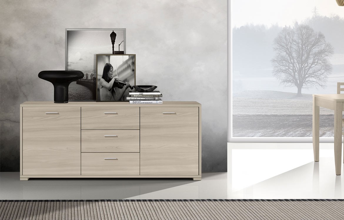 -Madia con 2 ante e 3 cassetti, misure: L.185 - H.80 - P.52,5