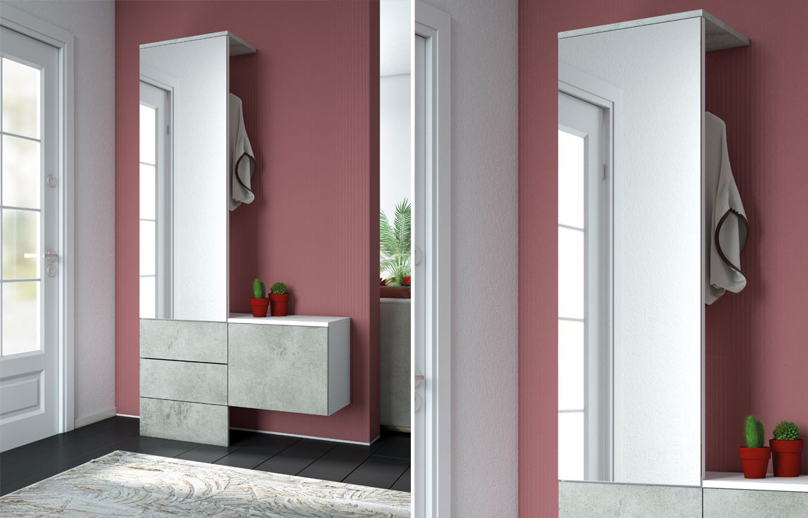 -Pannello Guardaroba con specchiera, misure: H.202 - L.50 - P.35