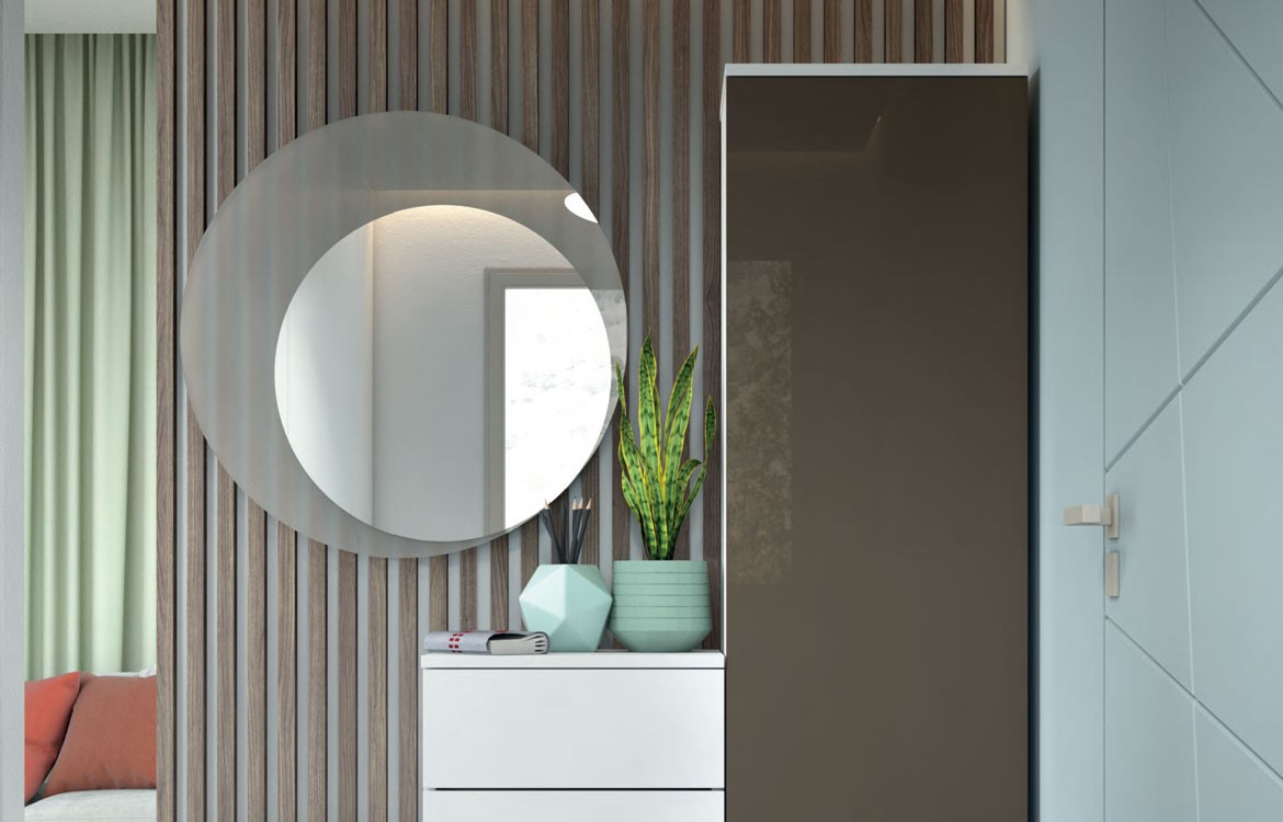 -Armadietto anta battente a specchio, misure: L.50 - H.140 - P.35