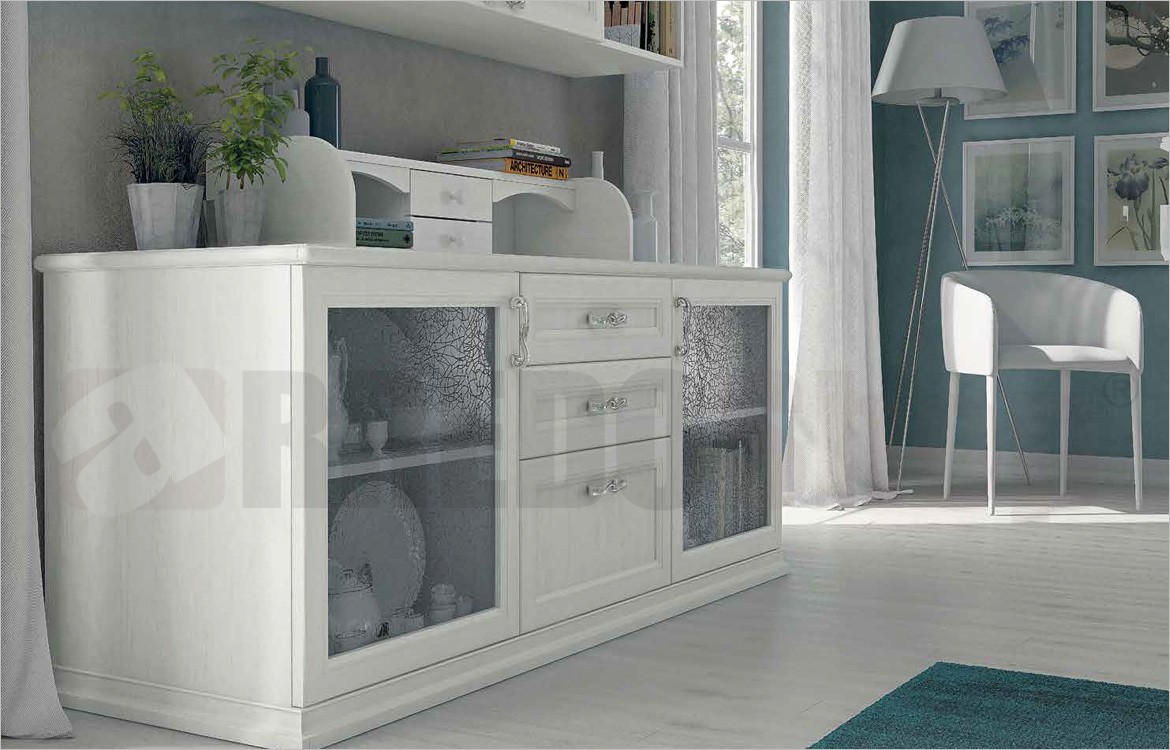 -N.1 Madia Antena L187 con due ante in vetro e 3 cassetti
