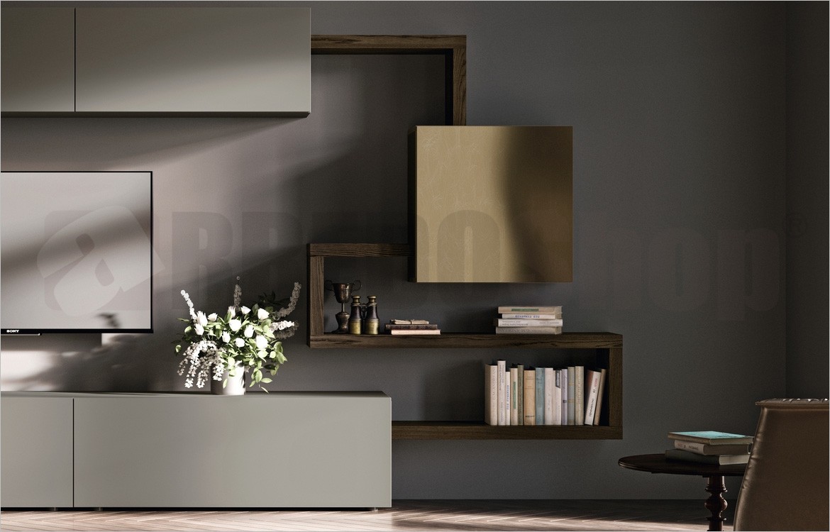 -Composizione mensole con spalle finitura frassino tinto petrolio