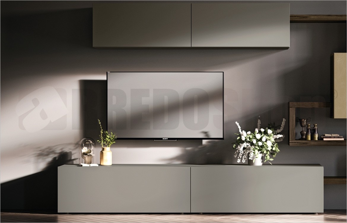 -N.1 Pensile con 2 ante a vasistas L180 laccato quarzo opaco