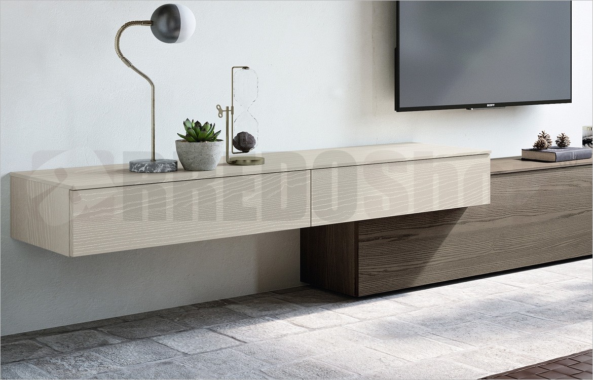 -N.1 Base sospesa due cassetti L180 x P35 Frass. lacc. decapè Ecrù