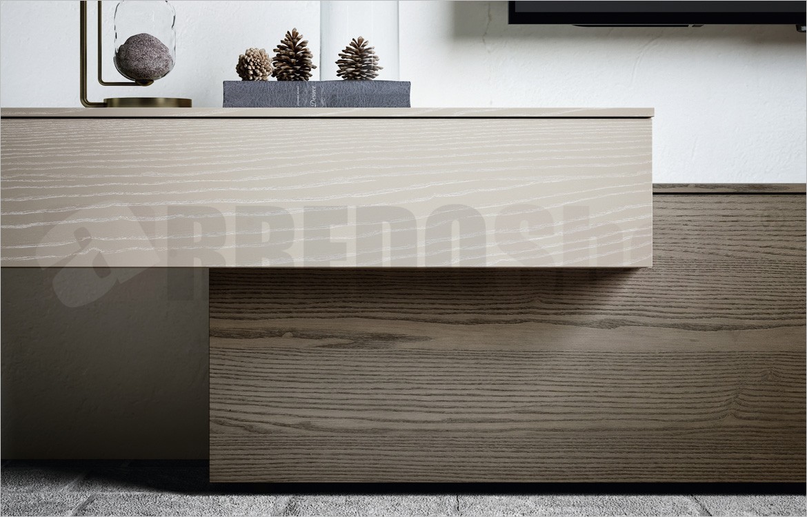 Finiture: Frassino laccato decapè / istinto burro / Frassino tinto polvere