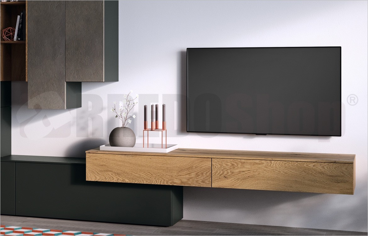-N.1 Base sospesa 2 cassetti con top L180 x P45 xH20 legno OLD