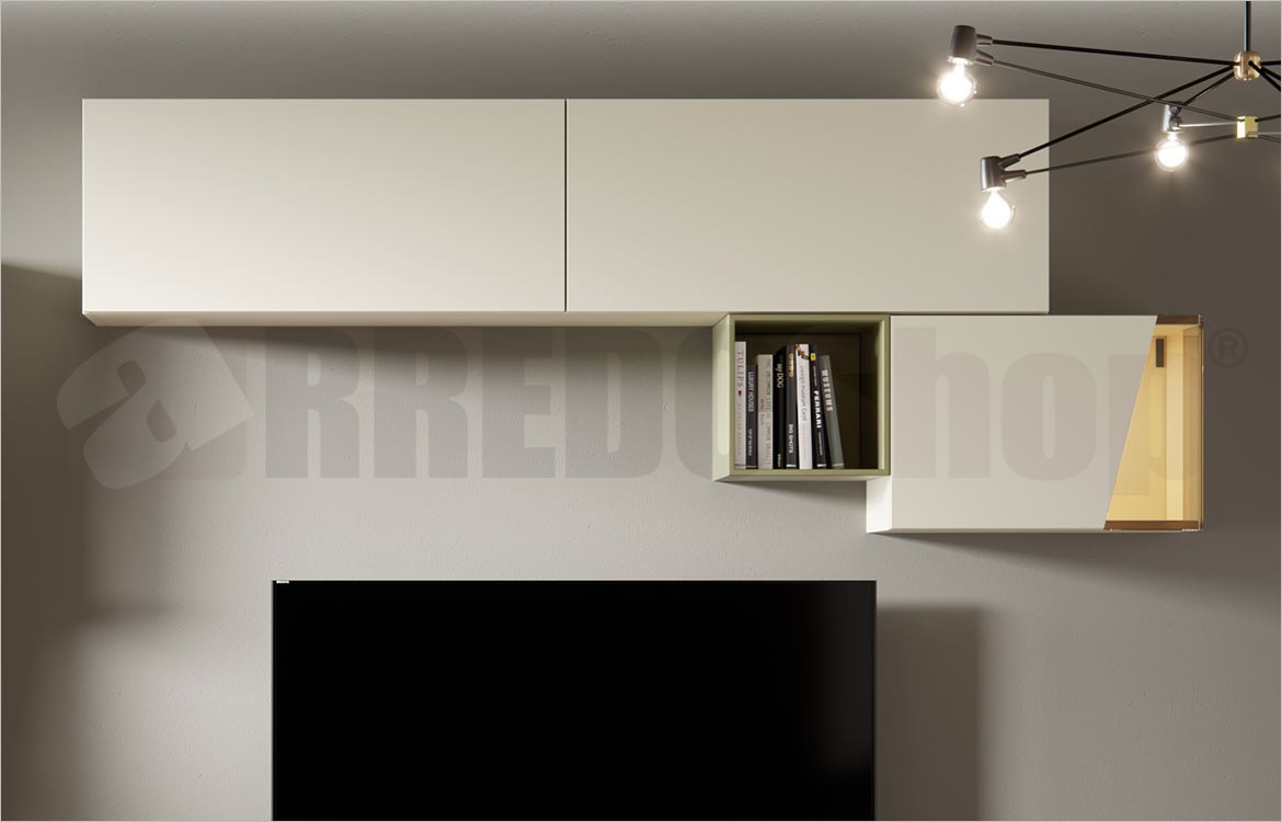 -N.1 Pensile con 2 ante a vasistas L180 x P35 x H40 Laccate lino opaco