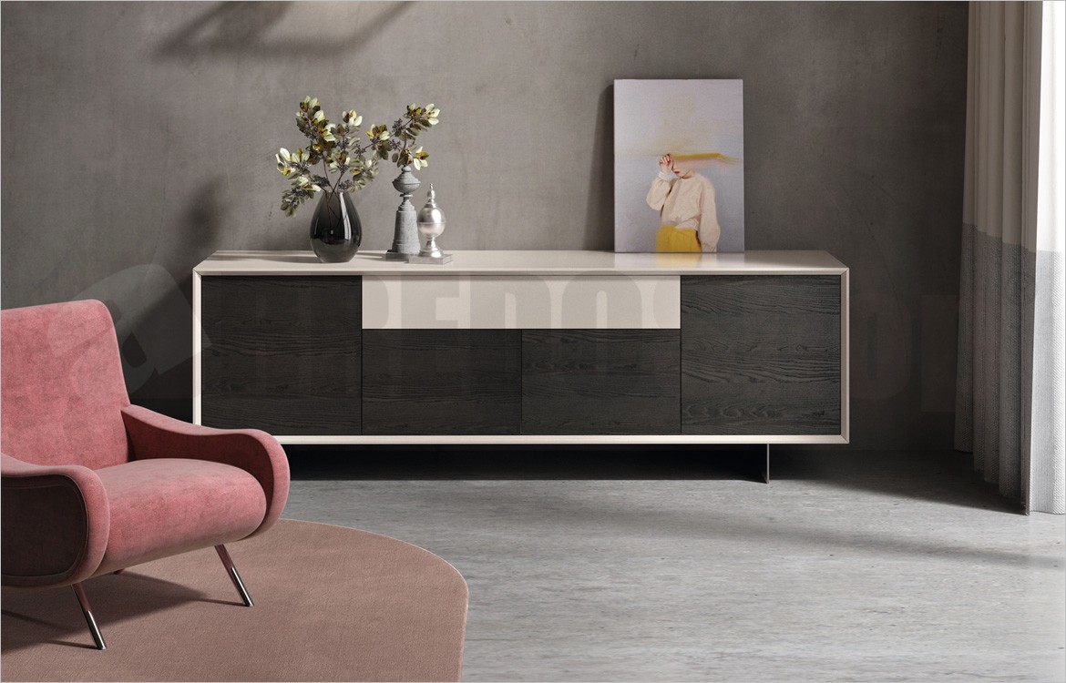 -N.1 Madia ZEN con un cassetto Lacc. magnolia lucido e 4 ante battenti Frass. tinto grigio quarzo