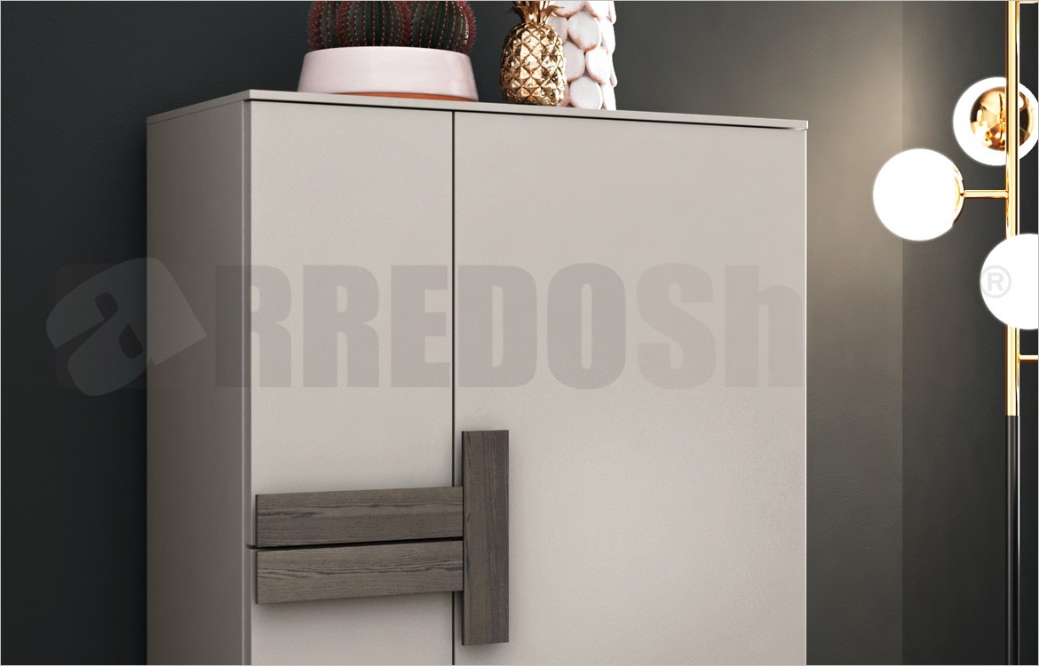 Finiture: Laccato ghiaccio opaco / Laccato grigio quarzo opaco / Frassino tinto polvere