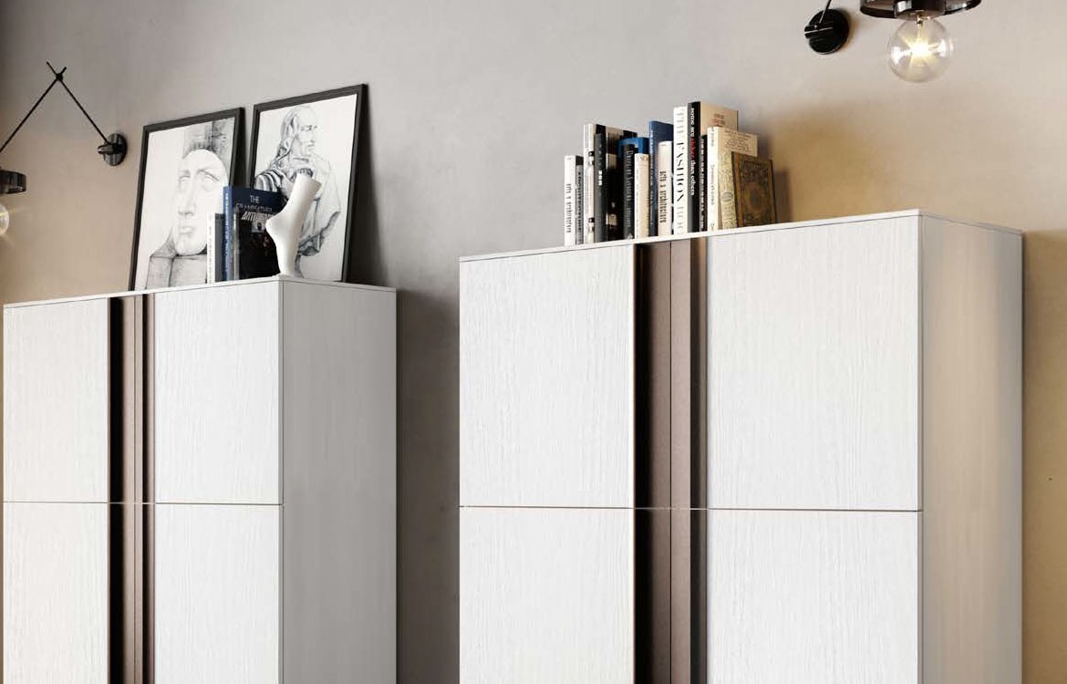 -N.2 madie 4 ante e maniglia gola in finitura noce bianco.