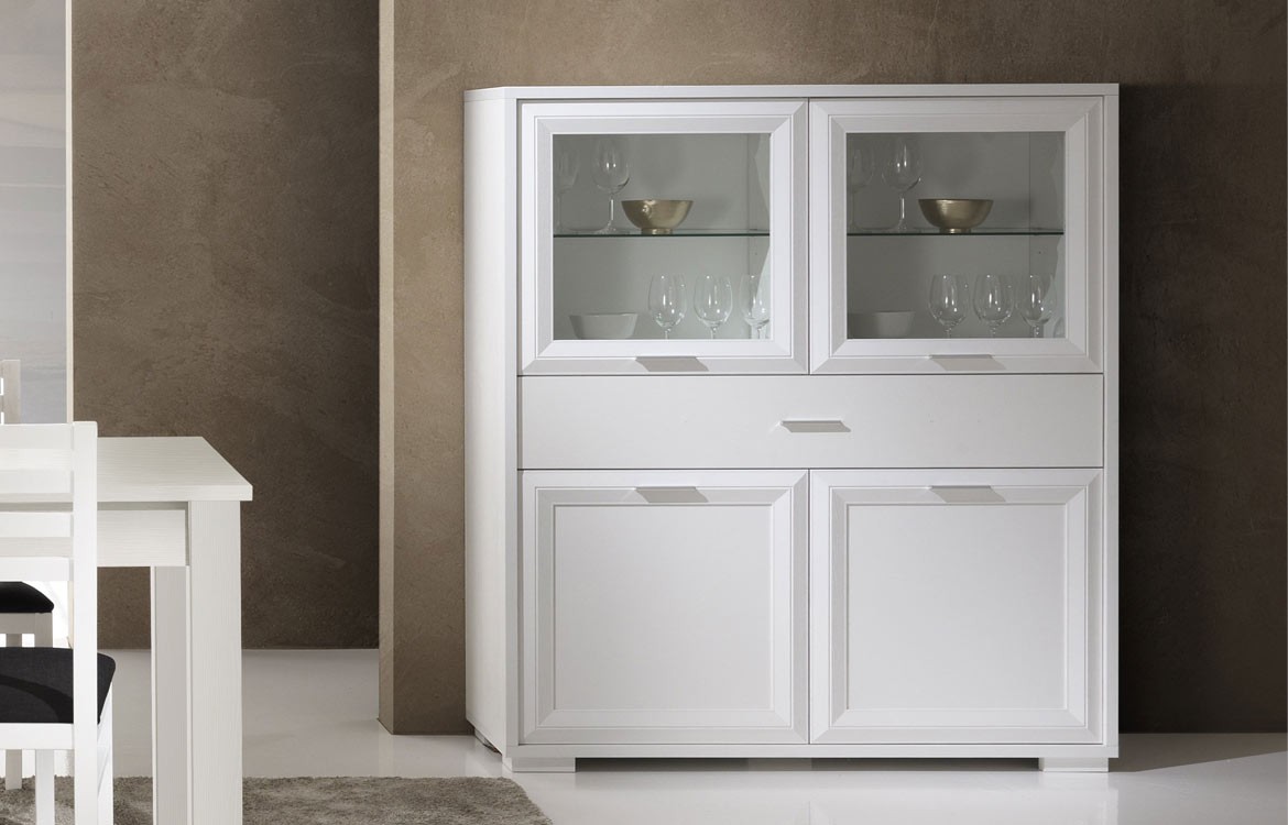 -Madia in Decò con 2 ante in vetro, 2 ante in legno e cassetto, misure: L.125 - H.150 - P.42,5