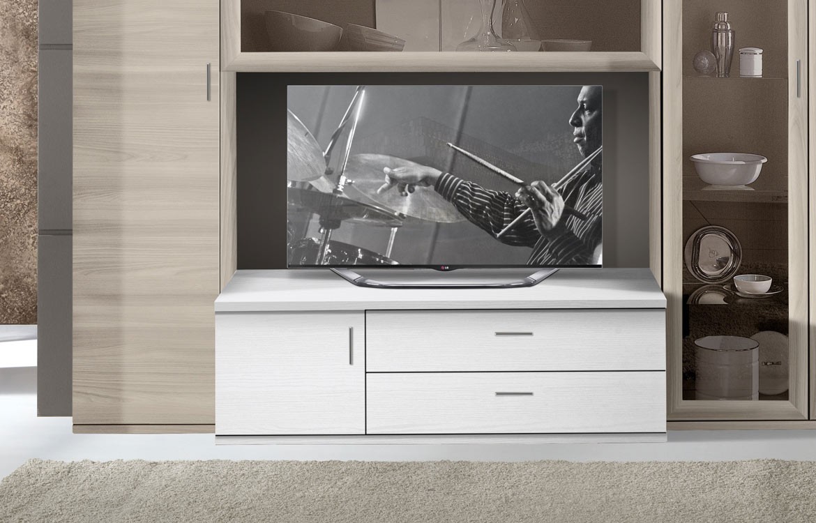-Elemento base con anta e 2 cassetti, misure: L.135 - H.78,5 - P.51,5